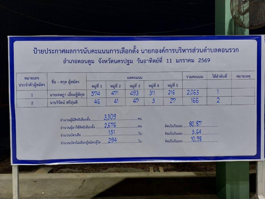 สรุปผลคะแนน จากการเลือกตั้งนายกและสมาชิกสภาฯ