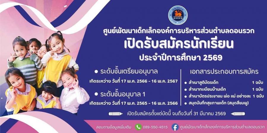 เปิดรับสมัครนักเรียนศูนย์พัฒนาเด็กเล็กองค์การบริหารส่วนตำบลดอนรวก